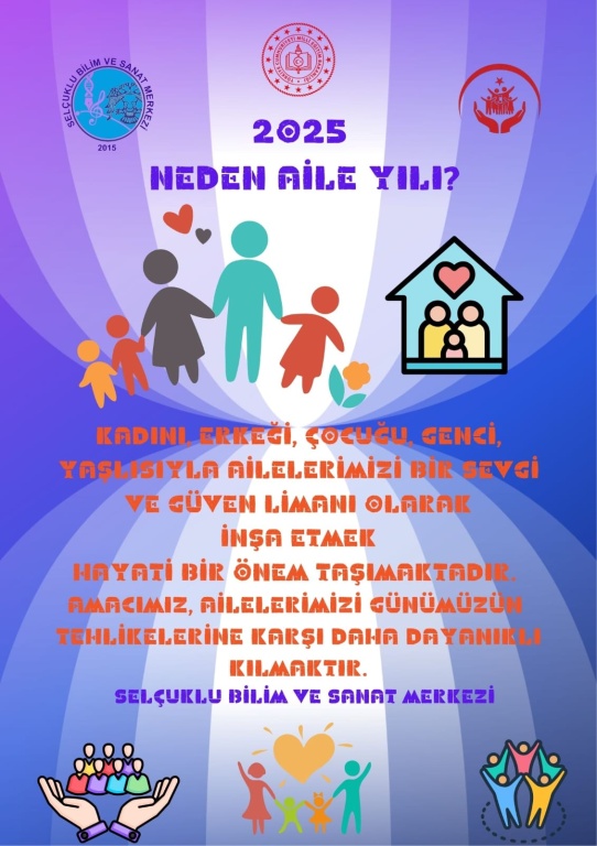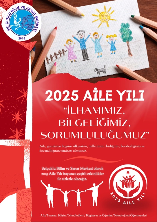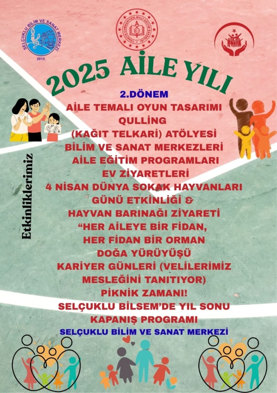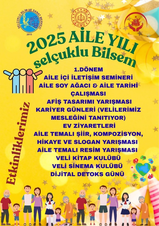 ‘’Selçuklu Bilim ve Sanat Merkezi’’ olarak 2025 Aile Yılı kapsamında yapacağımız etkinlik çalışmalarımızın afişlerini hazırladık. Kurum olarak aşağıdaki belgelerin ışığında Selçuklu Bilsem aile ve öğrencilerimizin katılımlarını bekliyoruz.